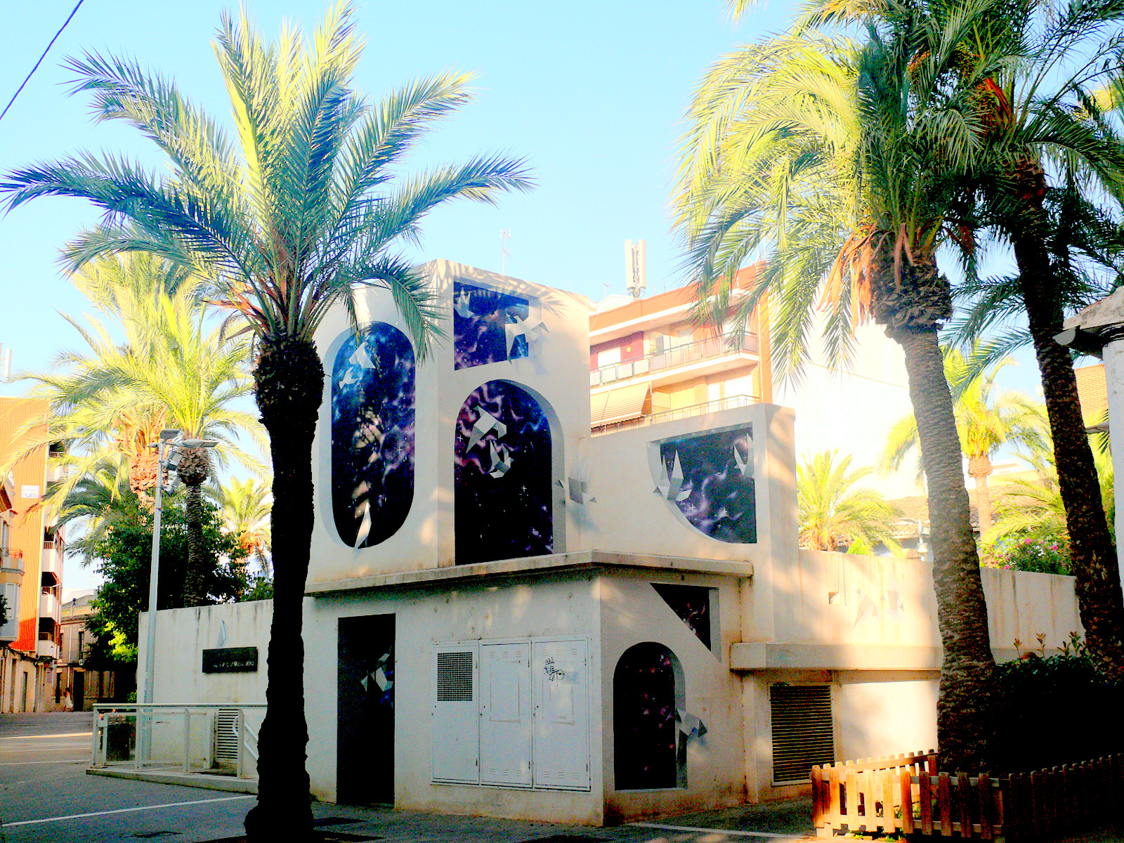 Porta d'entrada a la Sala d'Exposicions Carmen Alborch. Imatge del mural
